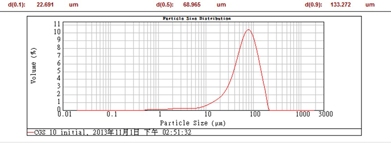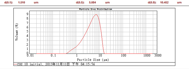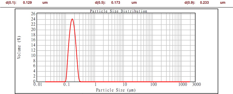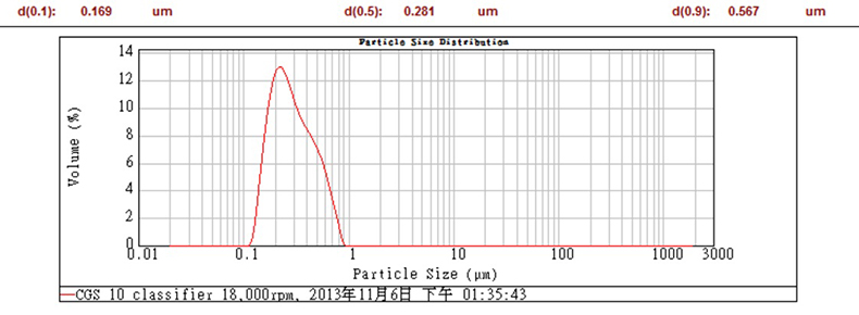 分散後:(CGS可重現奈米級粉料一次粒徑。d50 : 281nm)